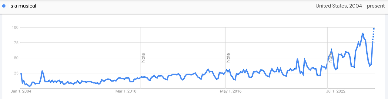 - GRAPH: Search interest in “is ___ a musical” is at an all-time high in the US