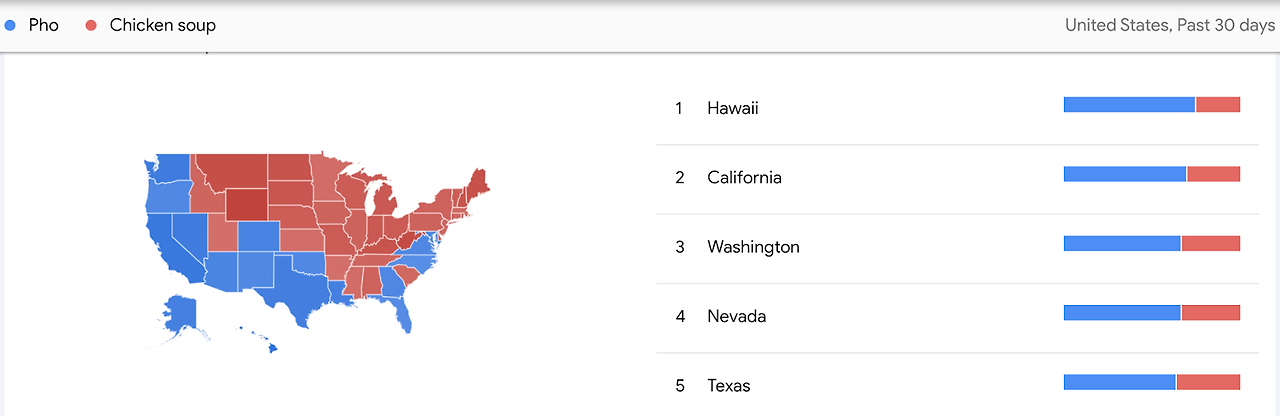 MAP: See how the country is searching for Pho vs Chicken soup over the past month