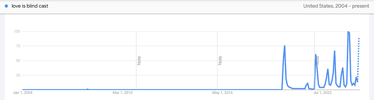 GRAPH: Search interest in “love is blind cast” is nearing an all-time high this month