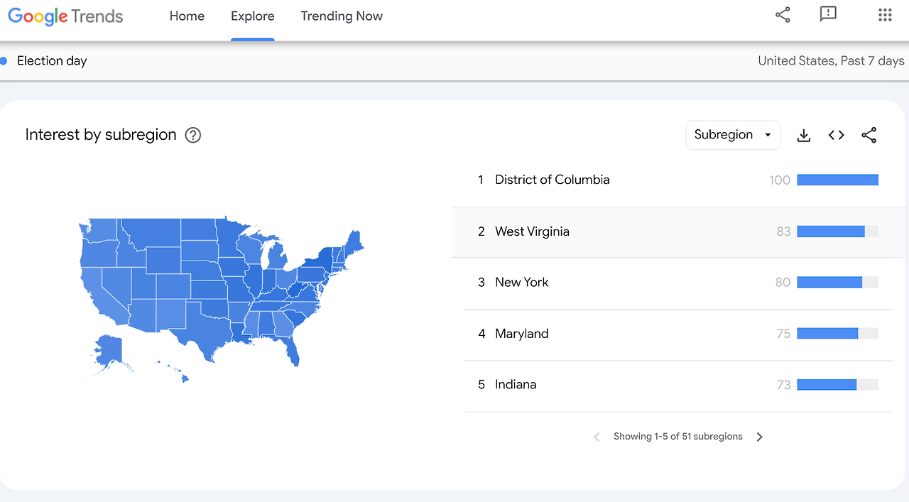 - “Election day crafts” is a breakout search and is top searched in New York state