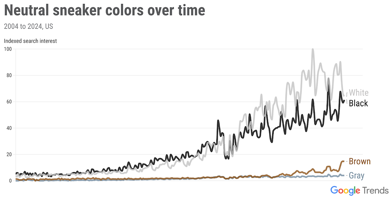 This week white sneakers were searched 8% more than black sneakers. Brown sneakers were searched more than ever in September.