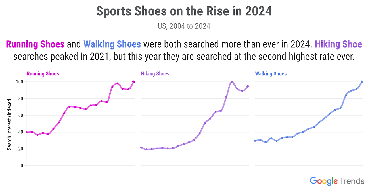 - “metallic sneakers” are at an all-time high in search right now, “silver new balance” was the top trending related search over the past 30 days