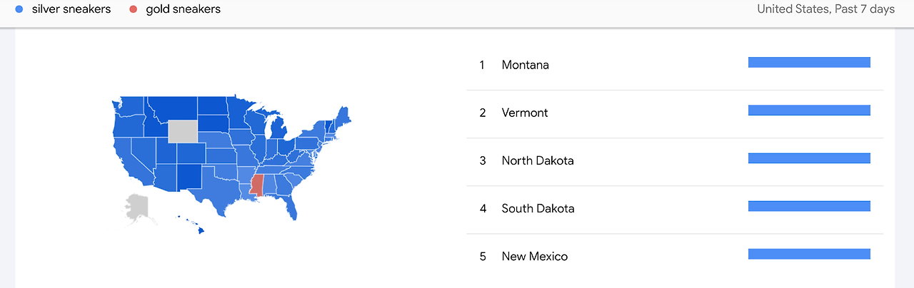 MAP: Over the past week, Mississippi is the only state searching more for “gold sneakers” than “silver sneakers”