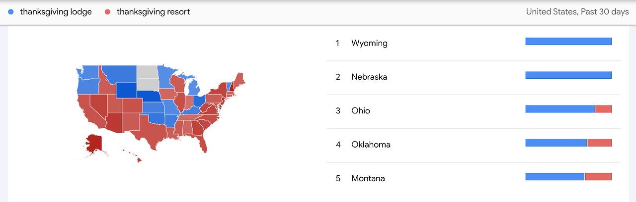 MAP: “thanksgiving resort” is searched 110% more than “thanksgiving lodge” over the past month