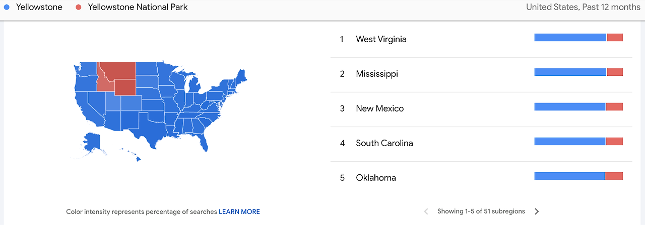 - For the past 12 months, search interest in the Yellowstone show was 2x more than search interest in the national park