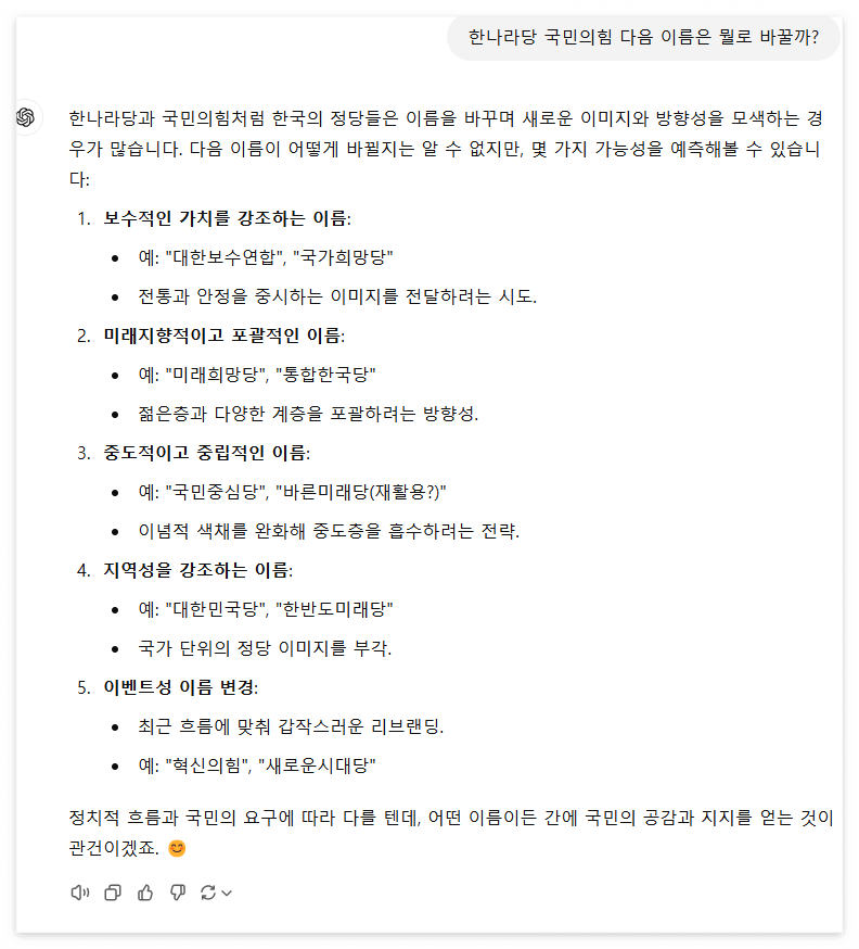 Q : 한나라당 → 국민의힘 그 다음 이름은?