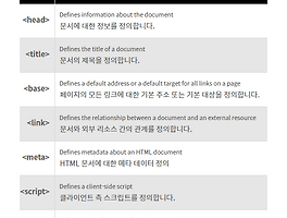 html head(1) 썸네일형 리스트형 HTML 헤드(HTML Head) The HTML Element HTML 요소 The element is a container for metadata (data about data) and is placed between the tag and the tag. 요소 (데이터에 대한 데이터)에 대한 메타 데이터 컨테이너하며 사이에 위치 태그와 태그. HTML metadata is data about the HTML document. Metadata is not displayed. HTML 메타 데이터는 HTML 문서에 대한 데이터입니다. 메타 데이터가 표시되지 않습니다. Metadata typically define the document title, character set, styles, links, scripts, and other m.. 이전 1 다음